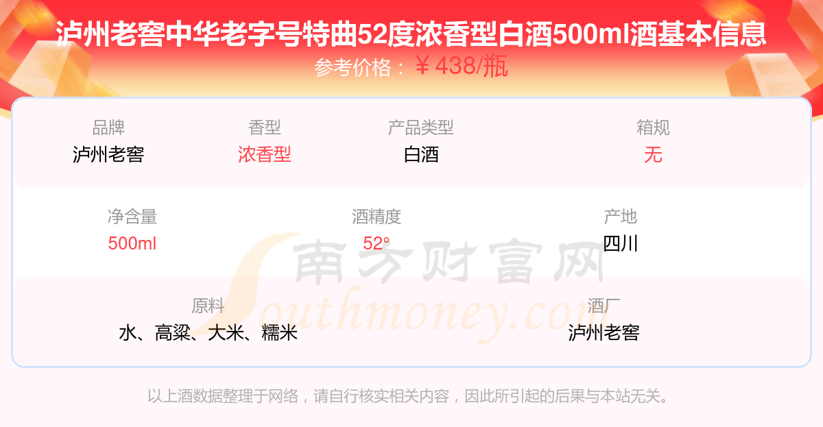 瀘州老窖中華老字號(hào)特曲52度濃香型白酒500ml基本信息