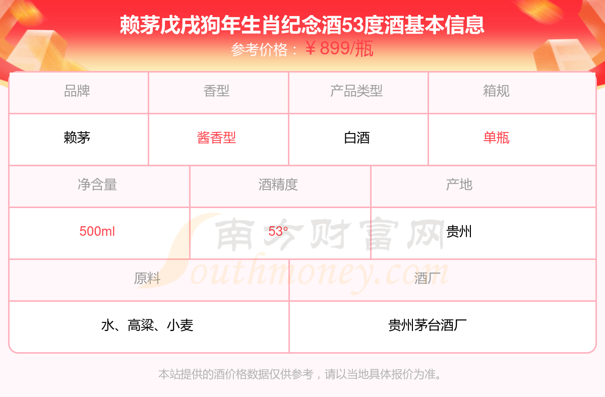 賴茅戊戌狗年生肖紀(jì)念酒53度基本信息