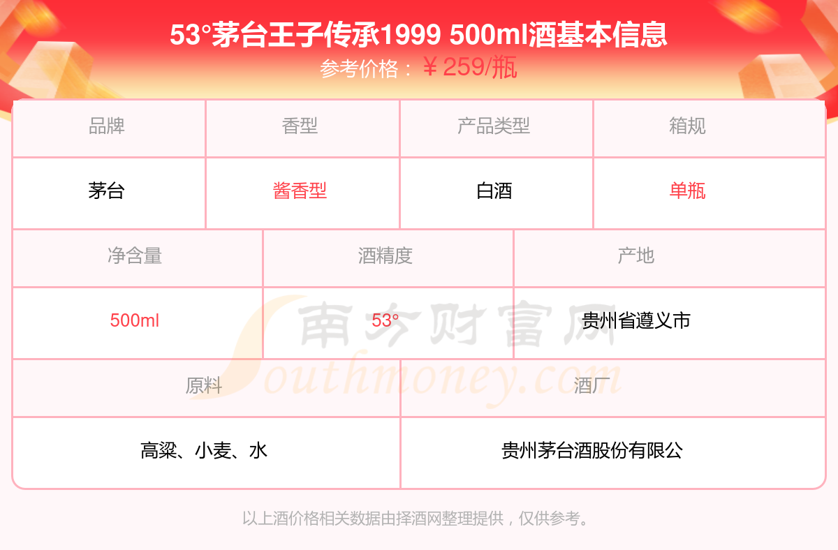 53°茅臺(tái)王子傳承1999 500ml基本信息