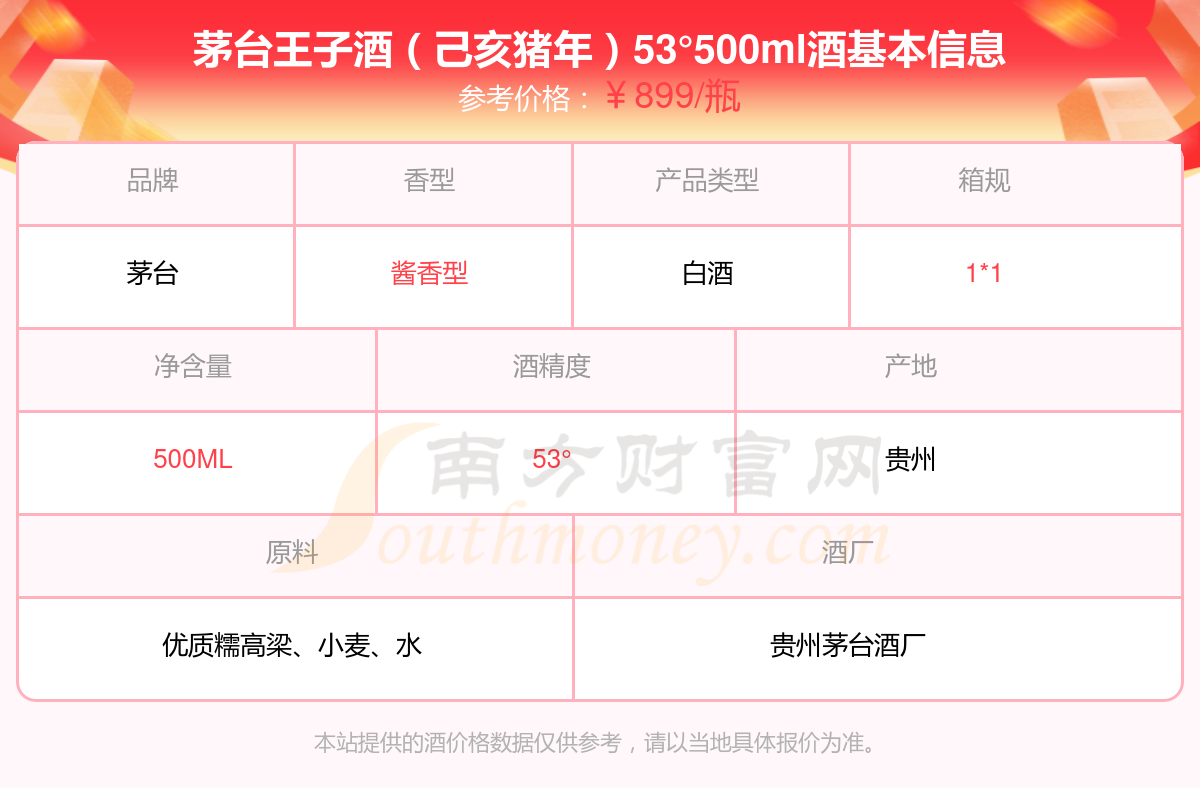 茅臺王子酒(己亥豬年)53°500ml基本信息