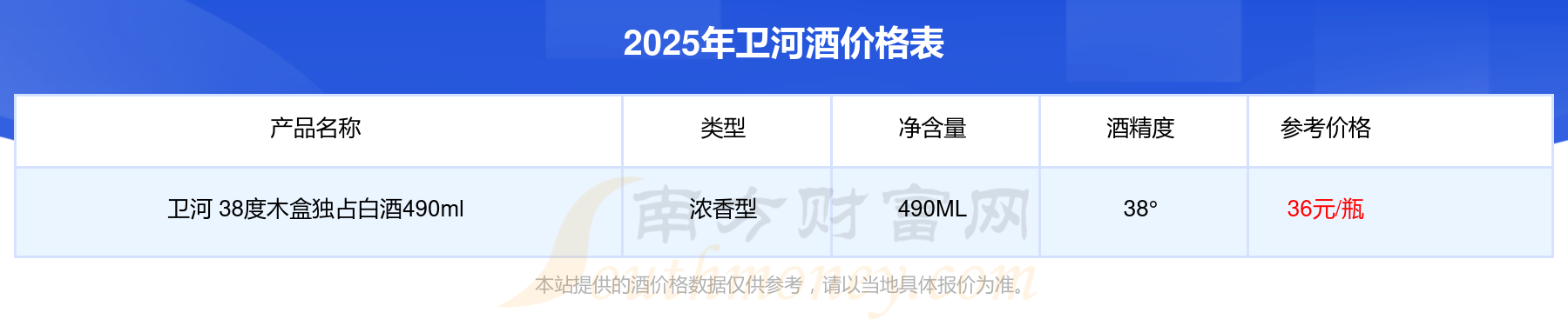 衛(wèi)河38度精裝一帆風順白酒490ml基本信息