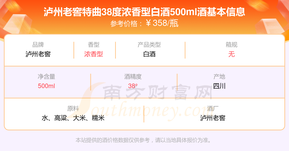 瀘州老窖特曲38度濃香型白酒500ml基本信息