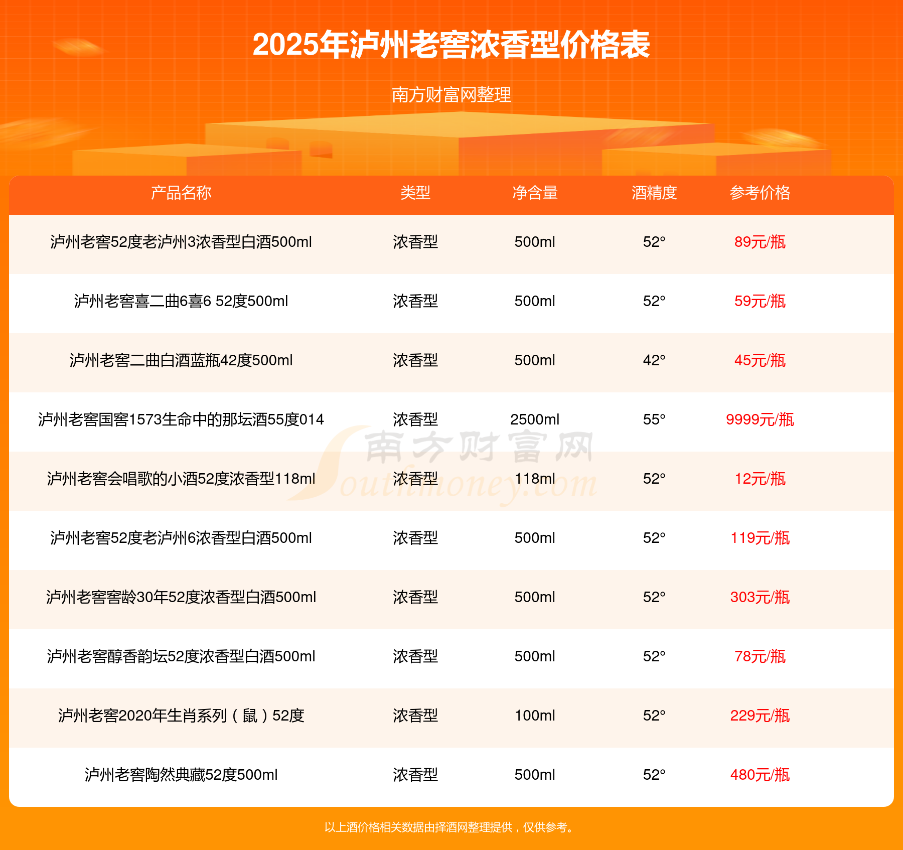 瀘州老窖國窖1573春釀鼠兆豐年E 55度參考價17999元/瓶、瀘州老窖國窖1573生命中的那壇酒55度014參考價9999元/瓶、瀘州老窖國窖1573春釀鼠兆豐年A 55度參考價5088元/瓶、瀘州老窖國窖1573生命中的那壇酒55度013濃香型白酒1000ml參考價4988元/瓶、瀘州老窖國窖1573生命中的那壇酒55度009 1000ml參考價4288元/瓶、瀘州老窖國窖1573中國品味52度濃香型白酒500ml參考價2888元/瓶。