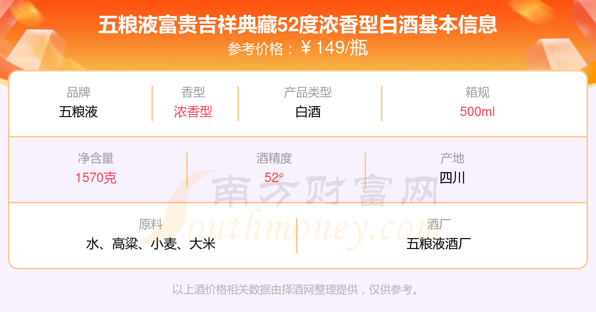五糧液富貴吉祥典藏52度濃香型白酒基本信息