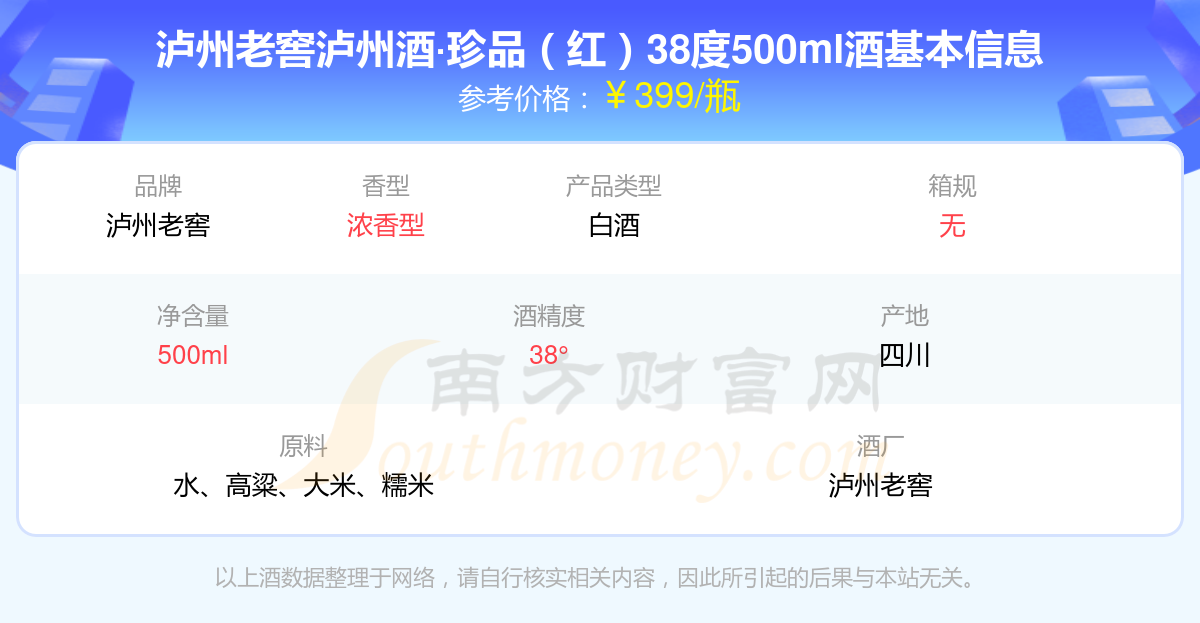 瀘州老窖瀘州酒·珍品(紅)38度500ml基本信息