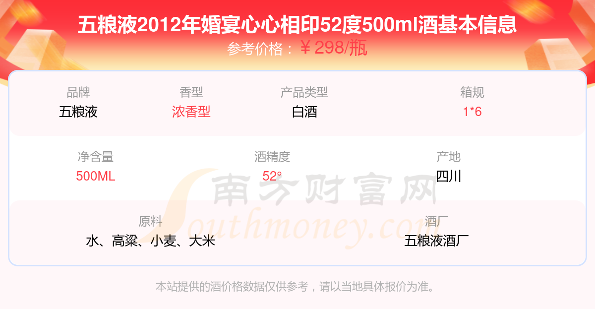 五糧液2012年婚宴心心相印52度500ml基本信息