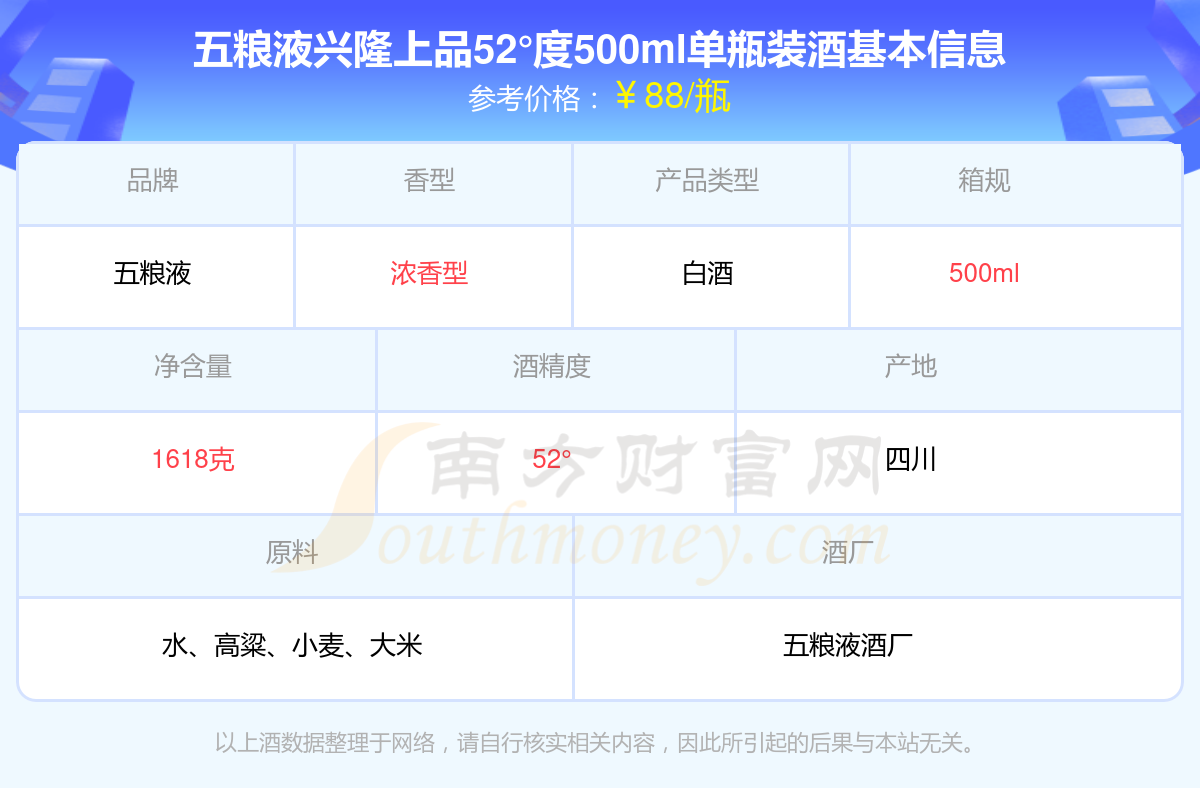 五糧液興隆上品52°度500ml單瓶裝基本信息