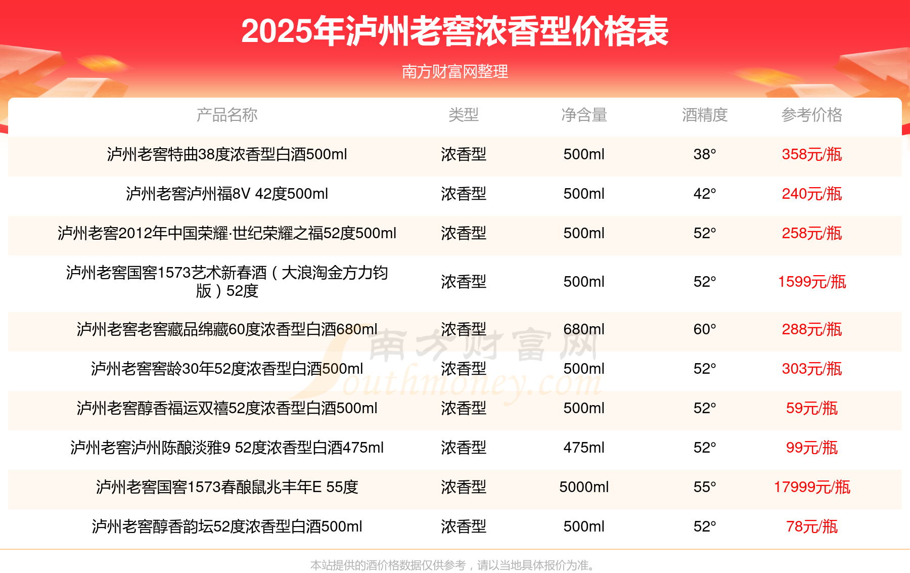 瀘州老窖濃香型酒最新價(jià)格2025: