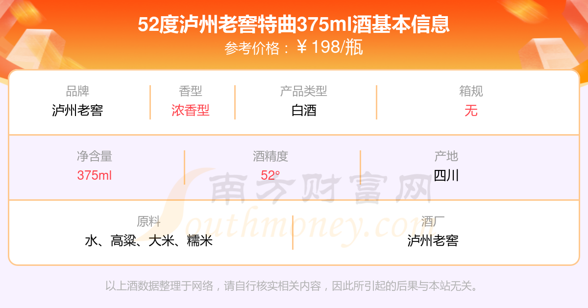 52度瀘州老窖特曲375ml基本信息