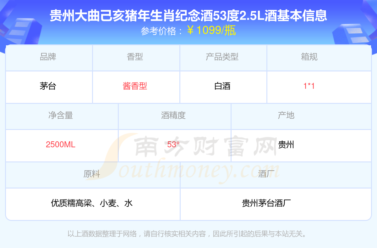 貴州大曲己亥豬年生肖紀念酒53度2.5L基本信息