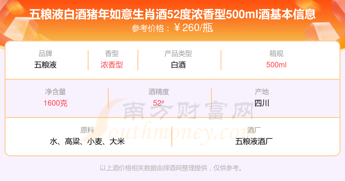 五糧液白酒豬年如意生肖酒52度濃香型500ml基本信息