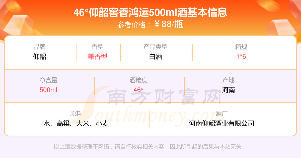 46°仰韶窖香鴻運(yùn)500ml基本信息