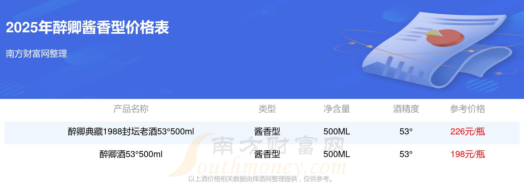 醉卿典藏1988封壇老酒53°500ml參考價(jià)226元/瓶、醉卿酒53°500ml參考價(jià)198元/瓶。
