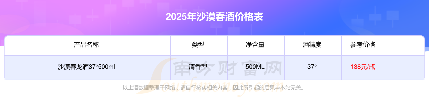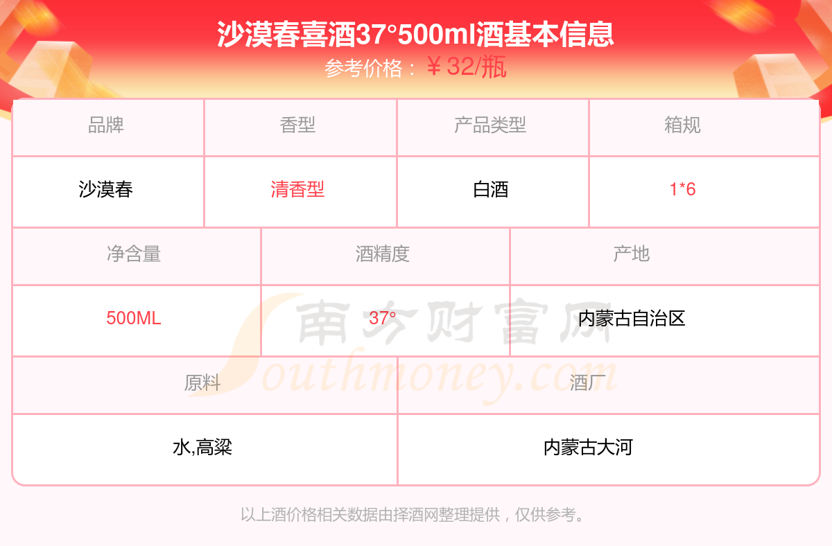 沙漠春喜酒37°500ml基本信息