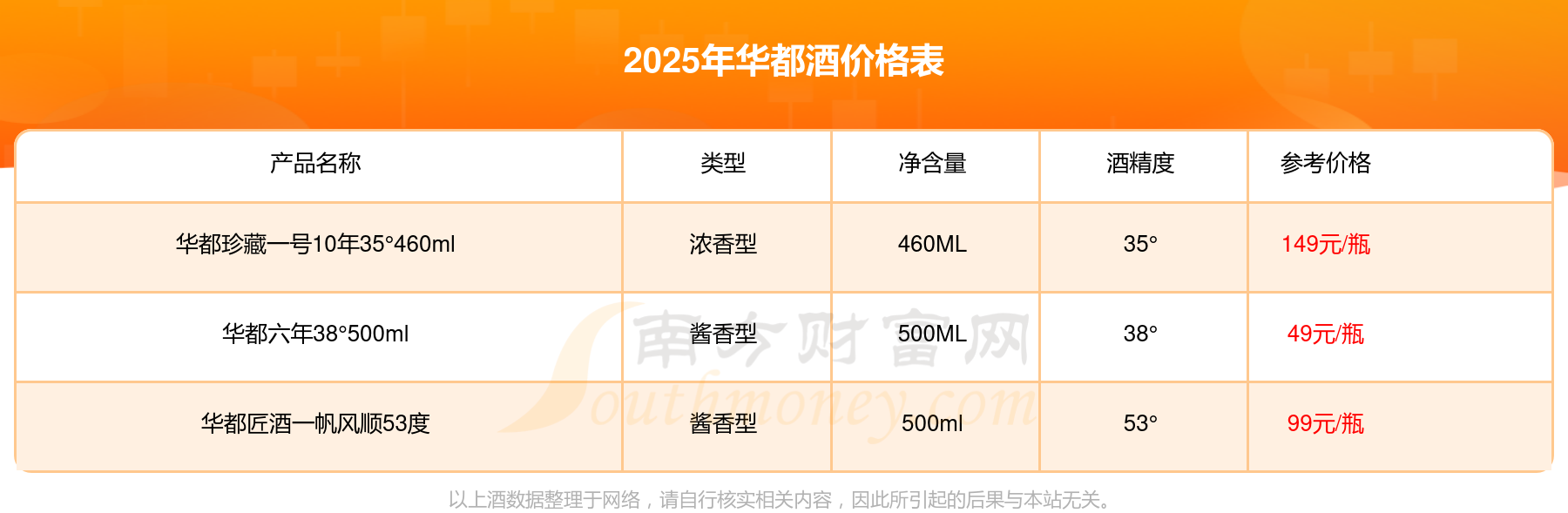 2025年華都酒華都珍藏一號(hào)10年35°460ml、華都匠酒一帆風(fēng)順53度、華都六年38°500ml等最新價(jià)格如下: