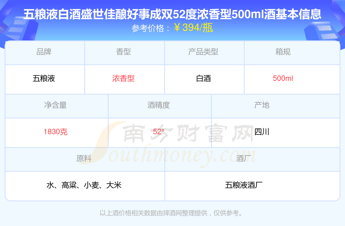 五糧液白酒盛世佳釀好事成雙52度濃香型500ml基本信息