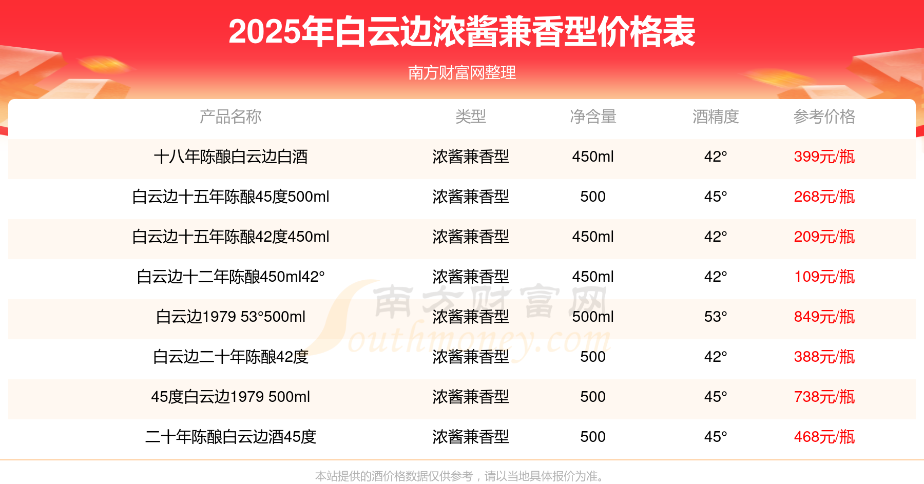 白云邊濃醬兼香型酒最新價(jià)格2025: