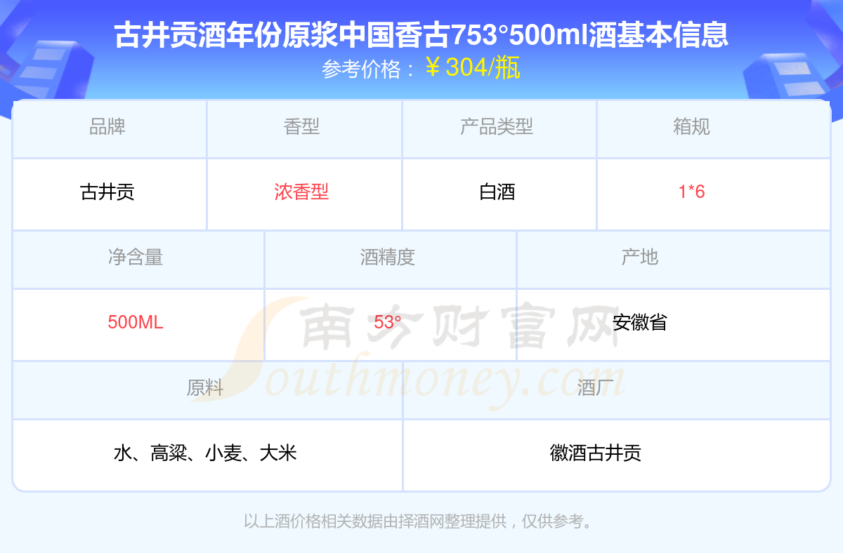 古井貢酒年份原漿中國香古753°500ml基本信息