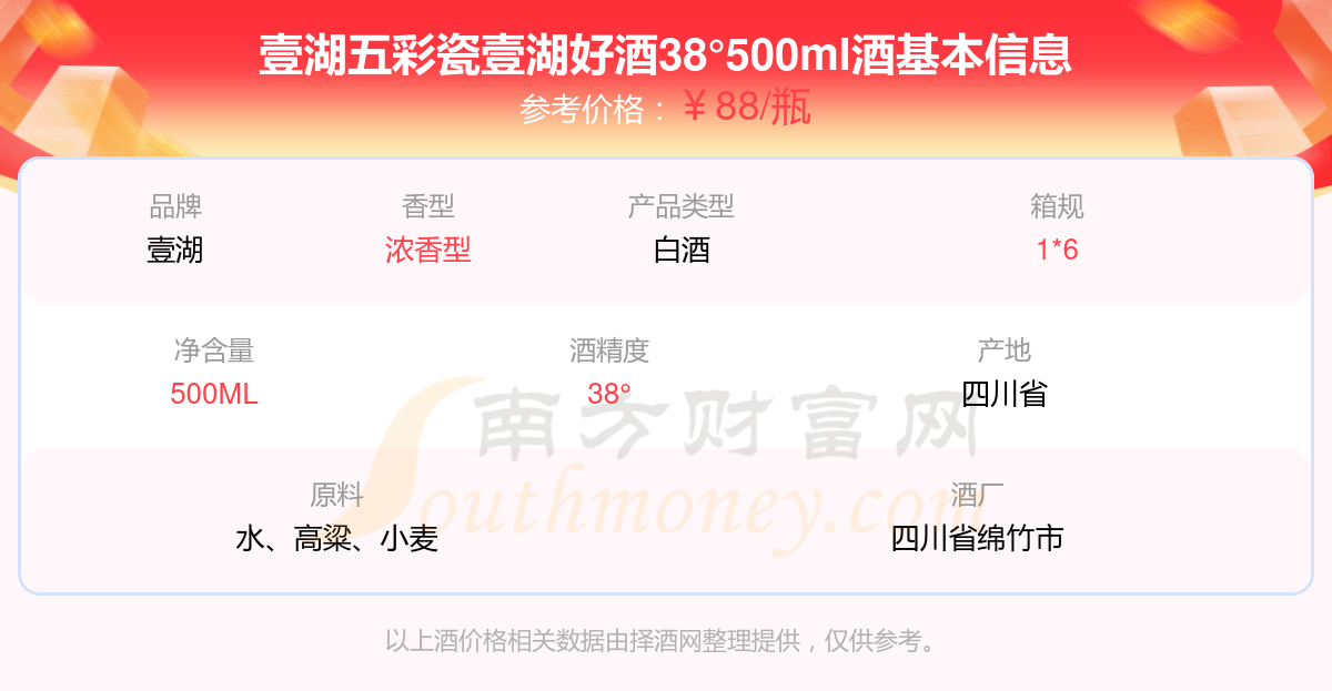 壹湖五彩瓷壹湖好酒38°500ml基本信息