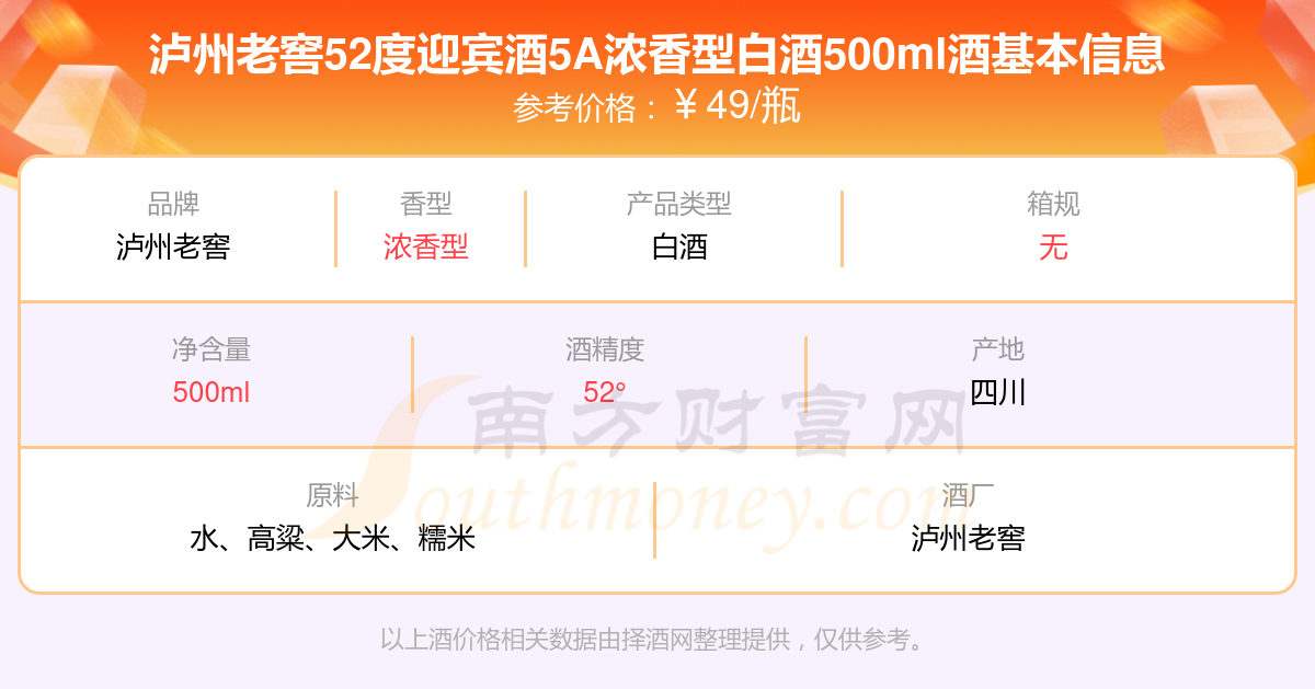 瀘州老窖52度迎賓酒5A濃香型白酒500ml基本信息