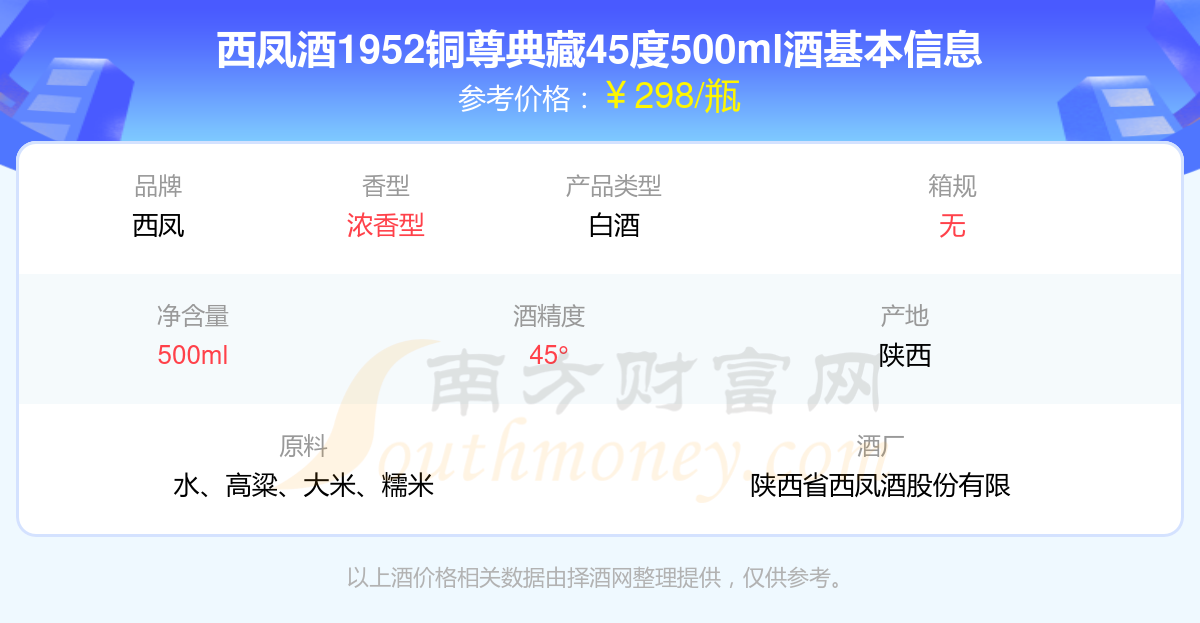 西鳳酒1952銅尊典藏45度500ml基本信息