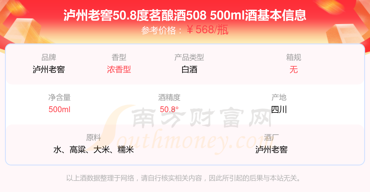 瀘州老窖50.8度茗釀酒508 500ml基本信息