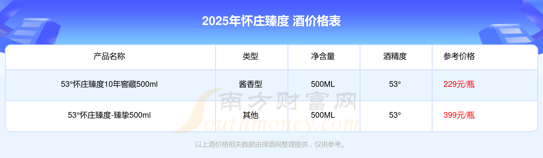 53°懷莊臻度-臻摯500ml參考價399元/瓶、53°懷莊臻度10年窖藏500ml參考價229元/瓶。
