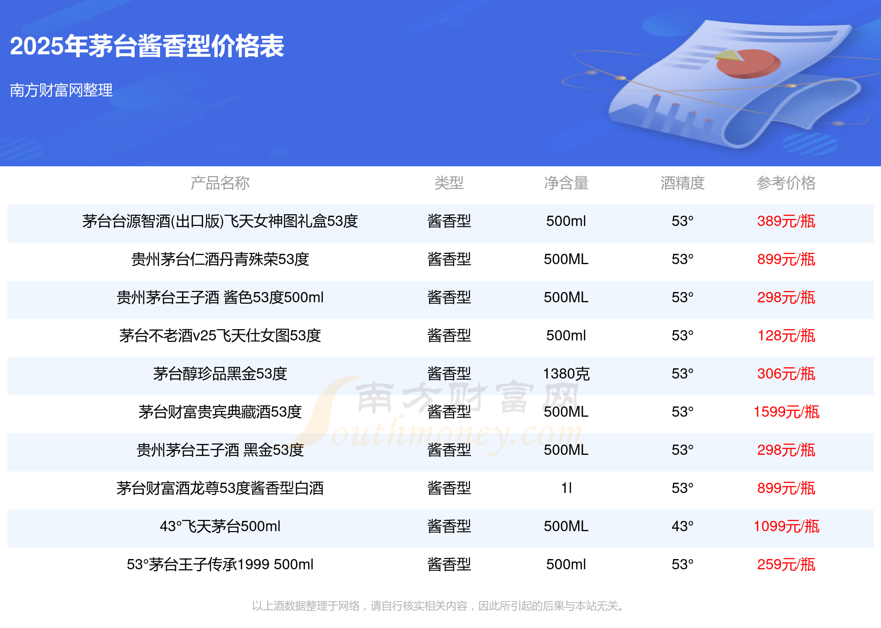 茅臺(tái)醬香型酒最新價(jià)格2025: