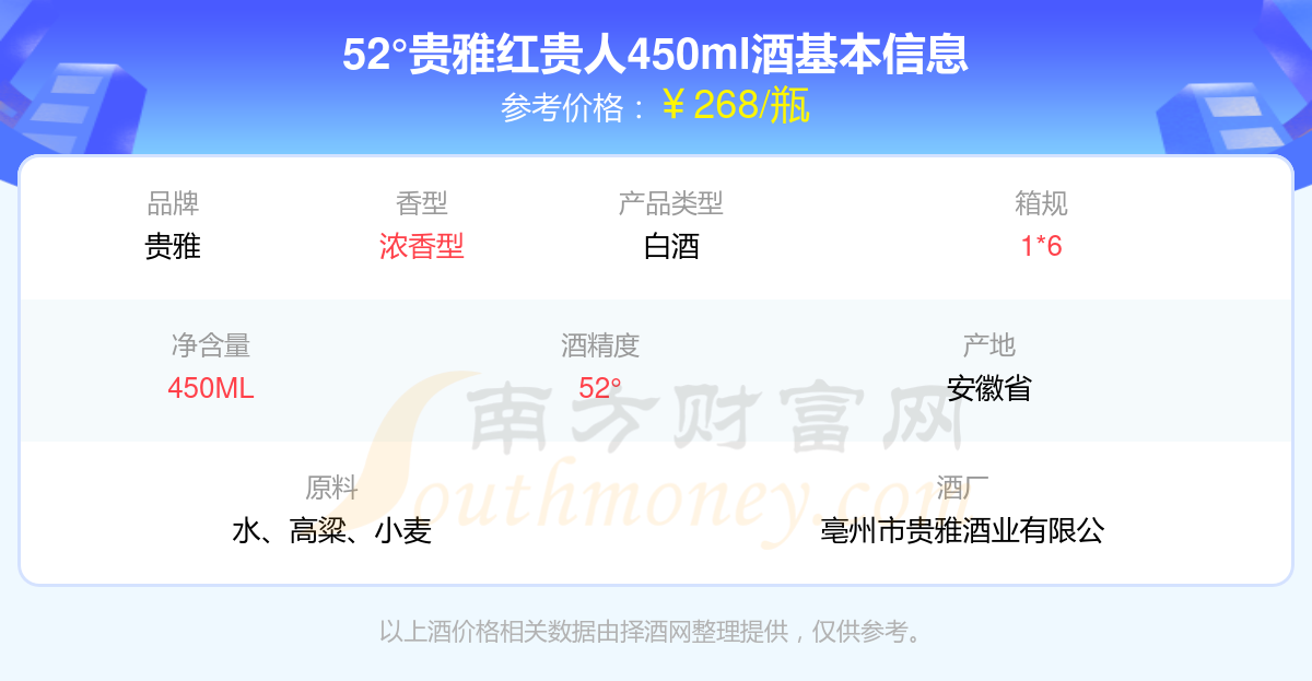52°貴雅紅貴人450ml基本信息