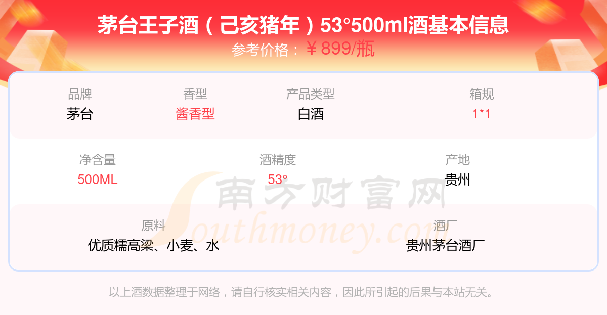 茅臺(tái)王子酒(己亥豬年)53°500ml基本信息