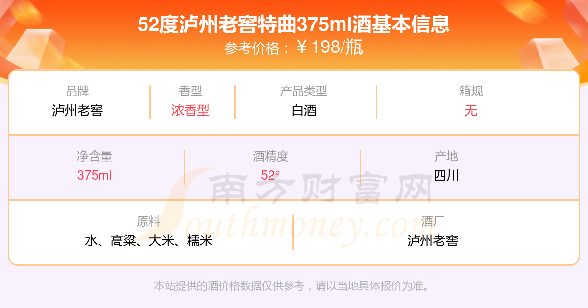 52度瀘州老窖特曲375ml基本信息