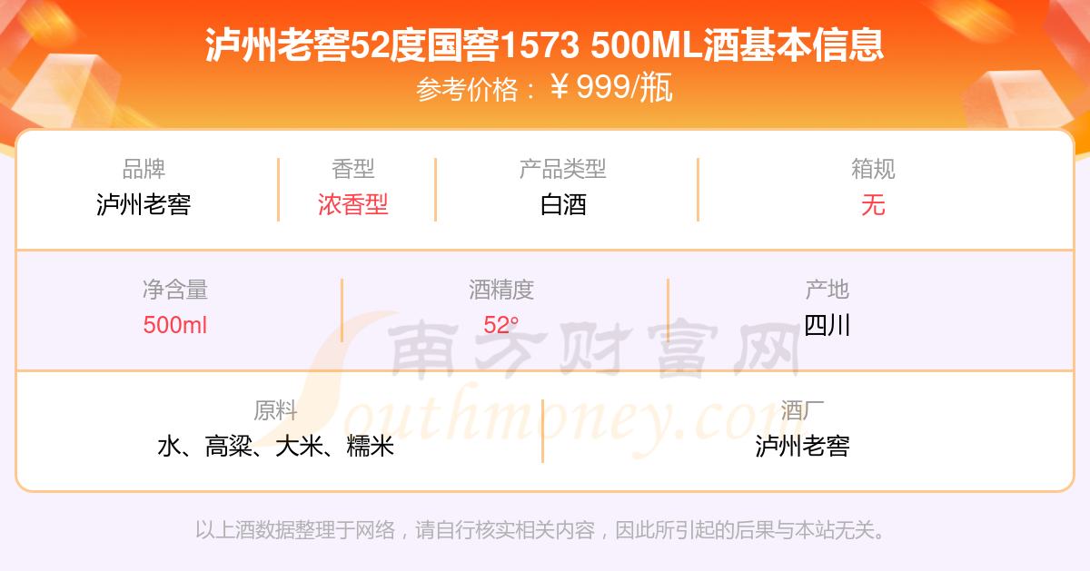 瀘州老窖52度國(guó)窖1573 500ML基本信息