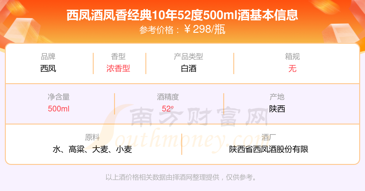 西鳳酒鳳香經(jīng)典10年52度500ml基本信息