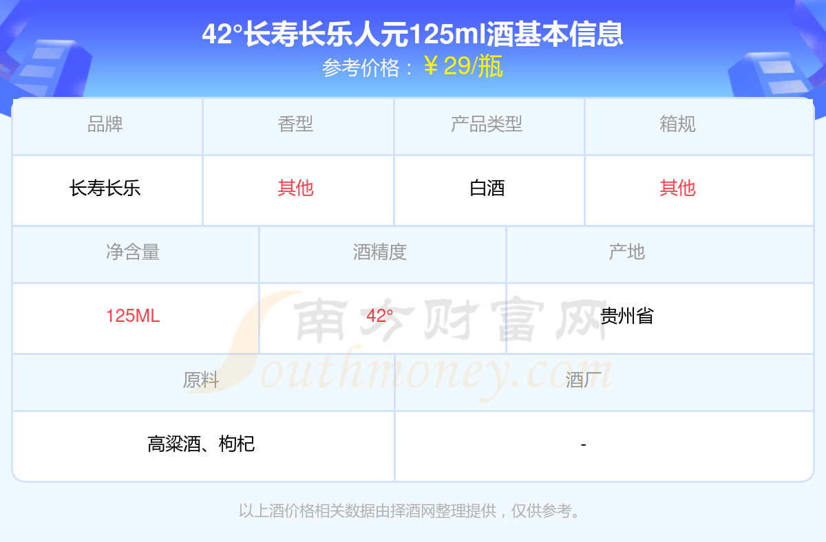 42°長(zhǎng)壽長(zhǎng)樂(lè)人元125ml基本信息