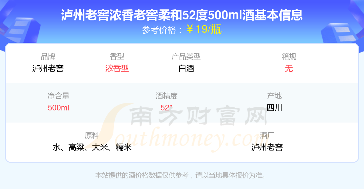 瀘州老窖濃香老窖柔和52度500ml基本信息