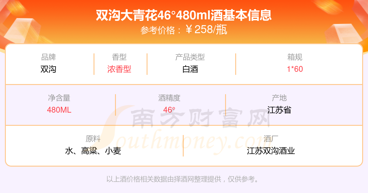 雙溝大青花46°480ml基本信息