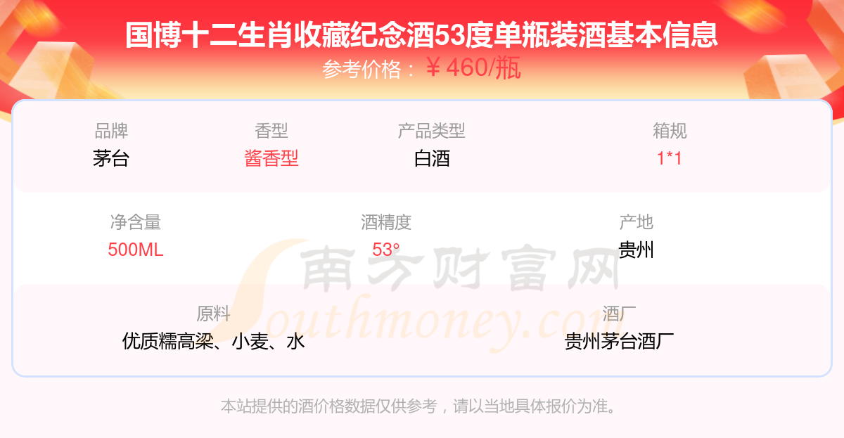 國博十二生肖收藏紀念酒53度單瓶裝基本信息