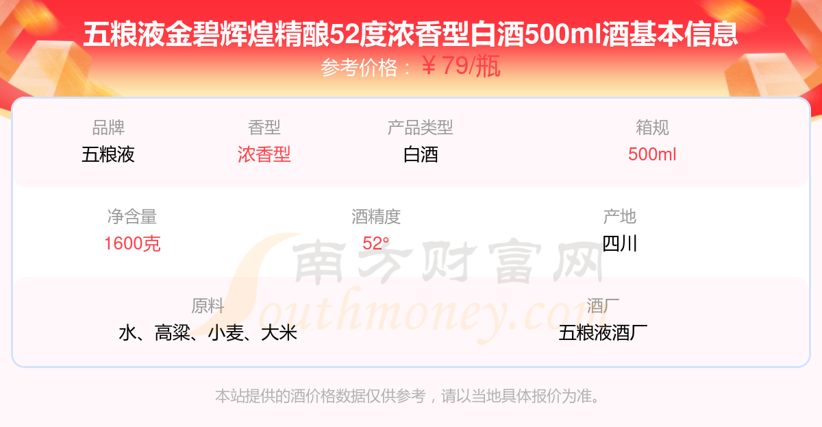 五糧液金碧輝煌精釀52度濃香型白酒500ml基本信息