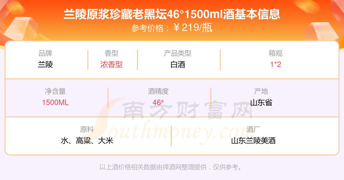 蘭陵原漿珍藏老黑壇46°1500ml基本信息
