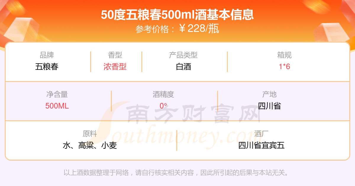 50度五糧春500ml基本信息