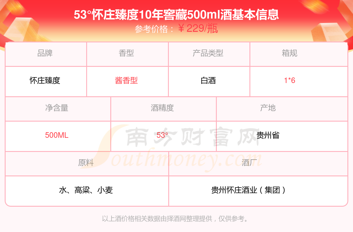 53°懷莊臻度10年窖藏500ml基本信息