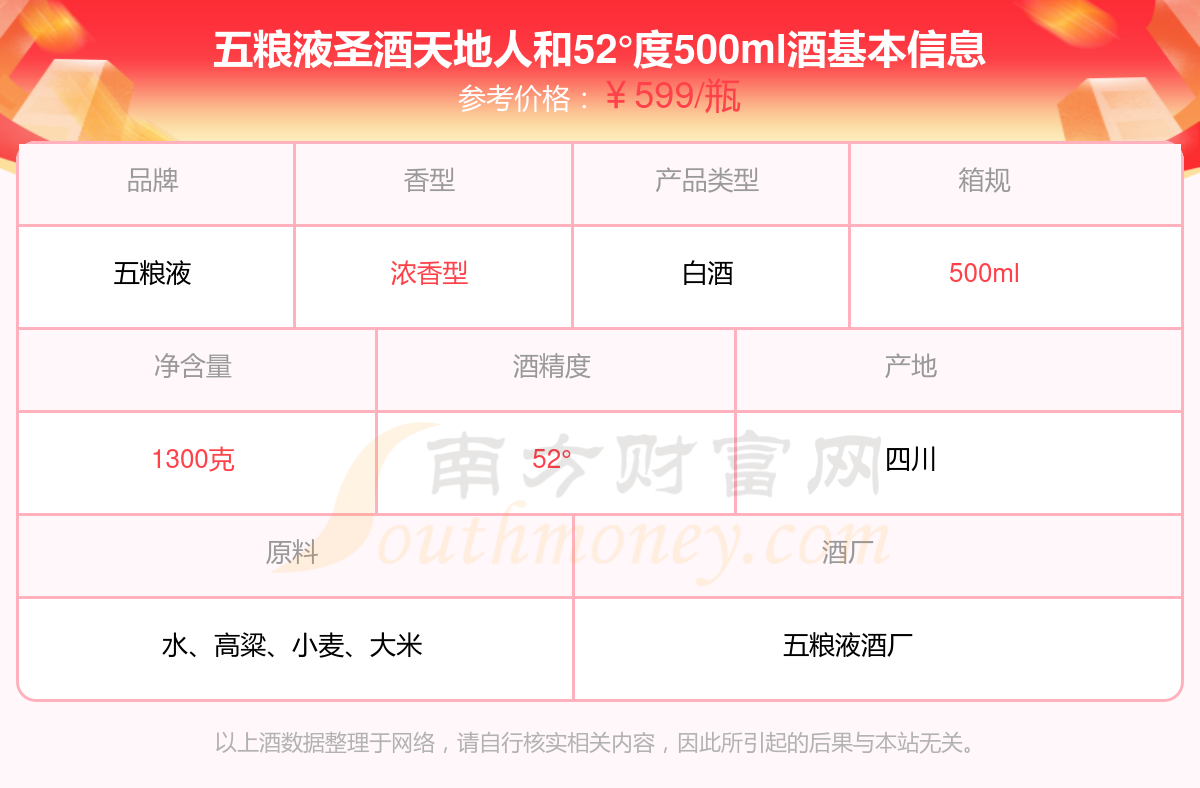 五糧液圣酒天地人和52°度500ml基本信息