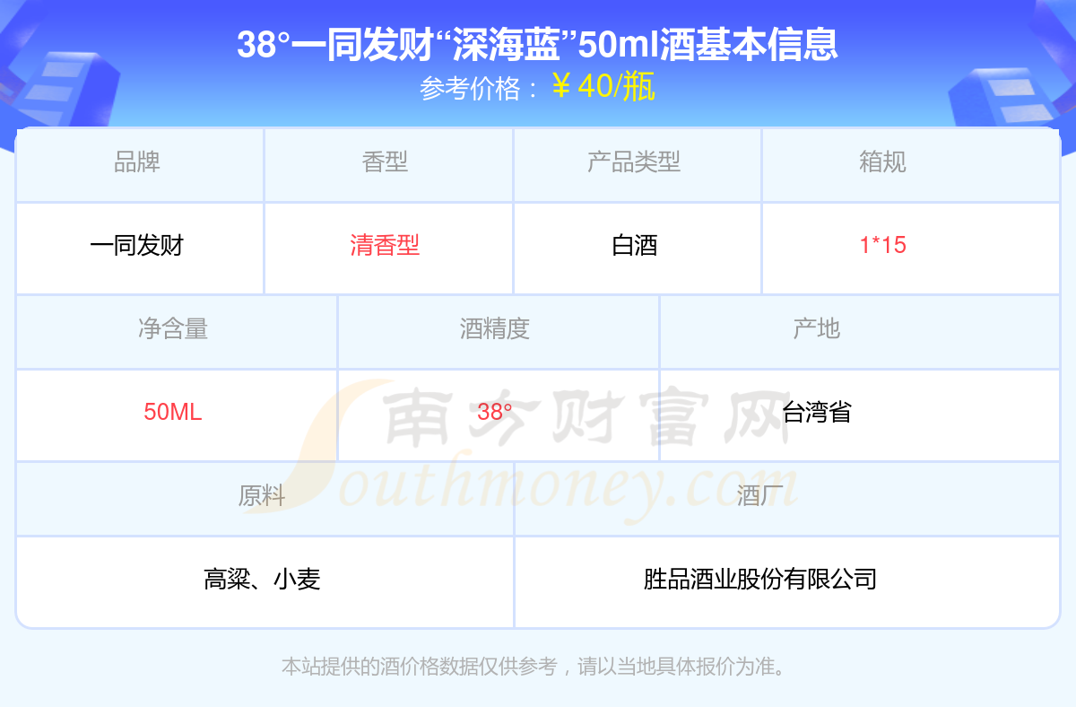 38°一同發(fā)財(cái)“深海藍(lán)”50ml基本信息