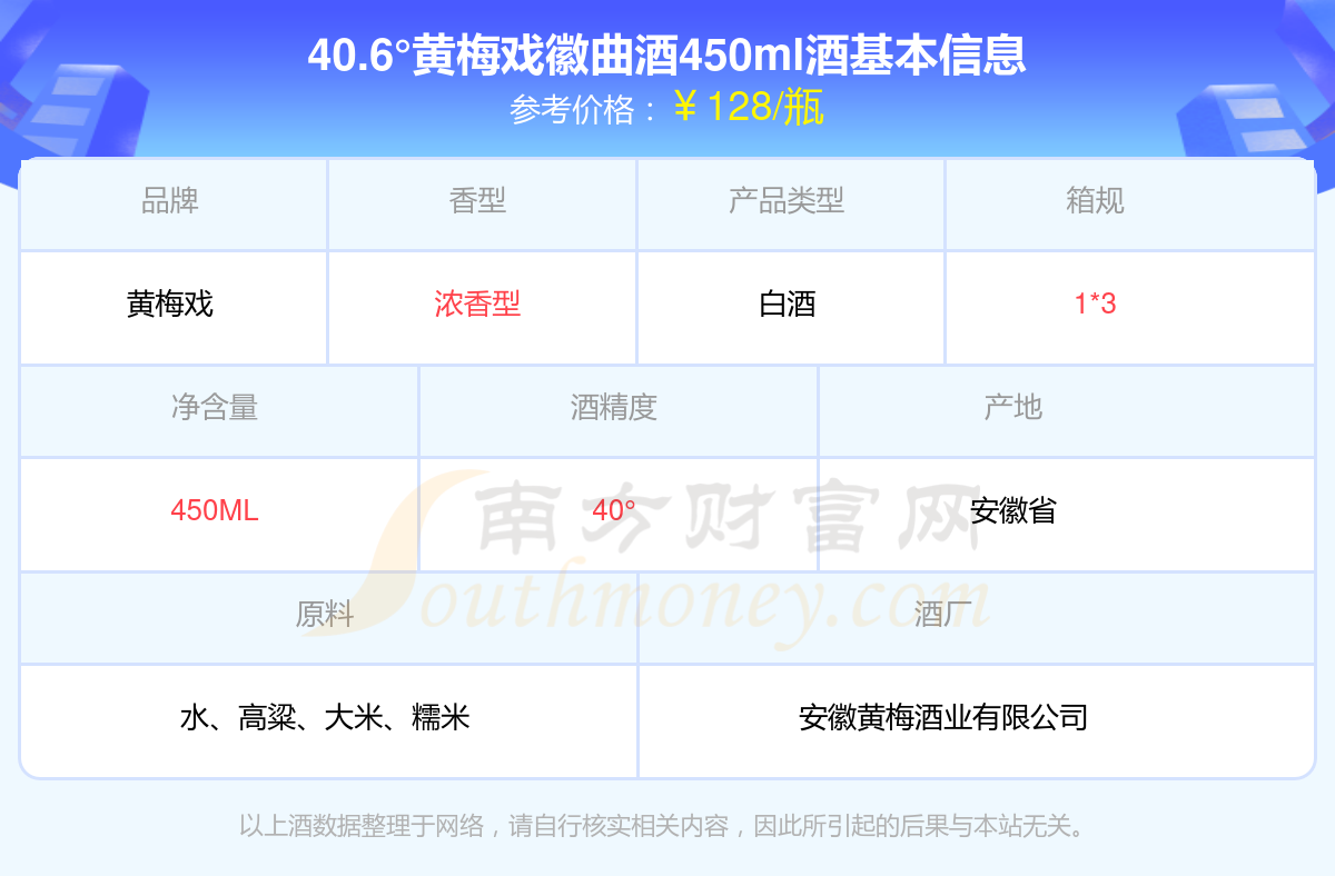 40.6°黃梅戲徽曲酒450ml基本信息