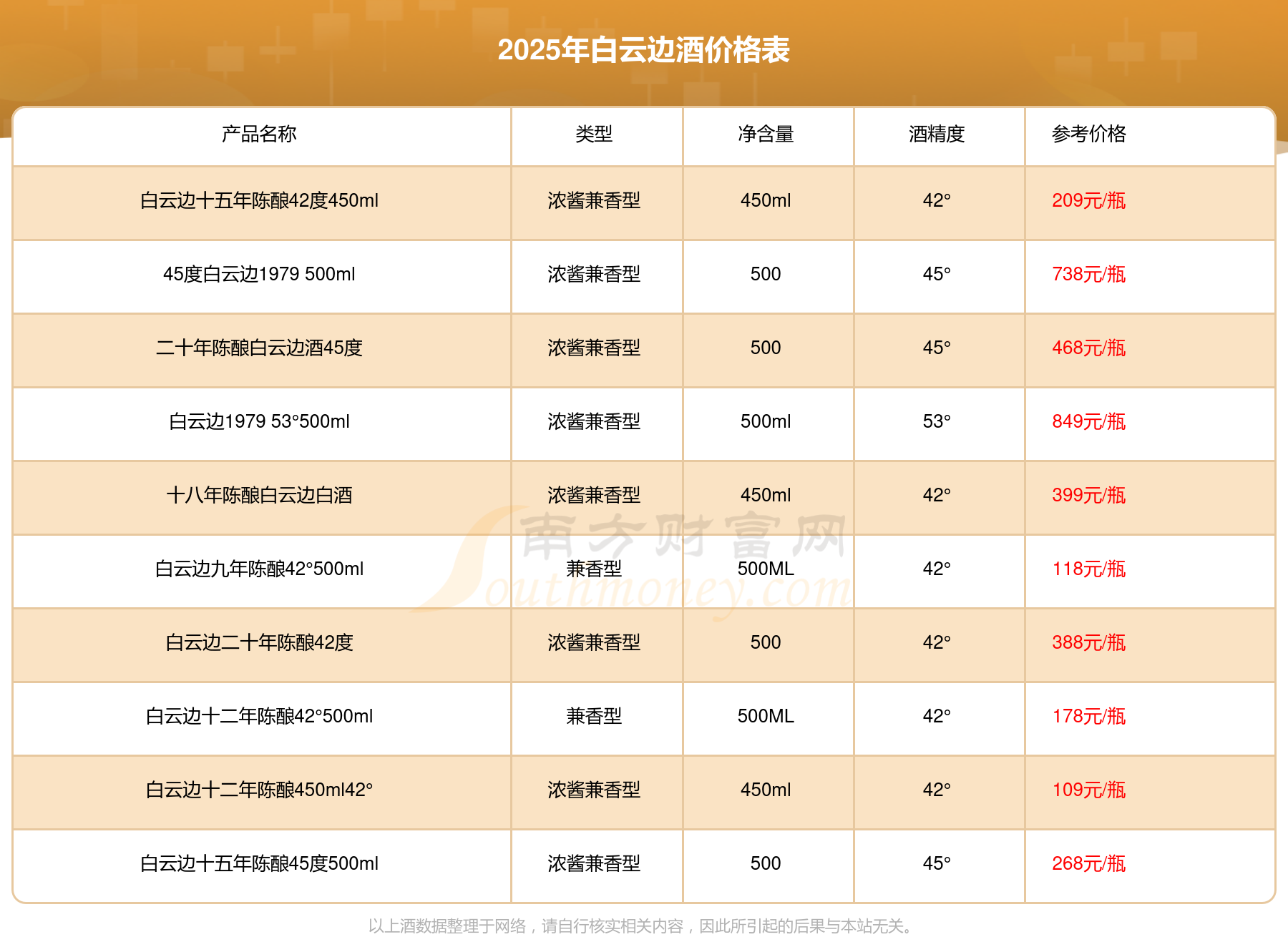 以上酒數(shù)據(jù)整理于網(wǎng)絡(luò),請自行核實(shí)相關(guān)內(nèi)容,因此所引起的后果與本站無關(guān)。