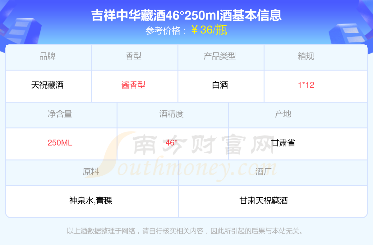吉祥中華藏酒46°250ml基本信息
