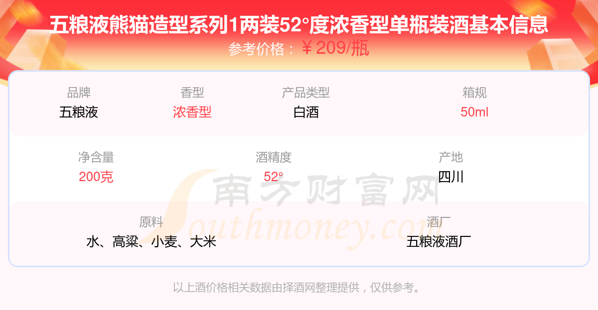 五糧液熊貓造型系列1兩裝52°度濃香型單瓶裝基本信息