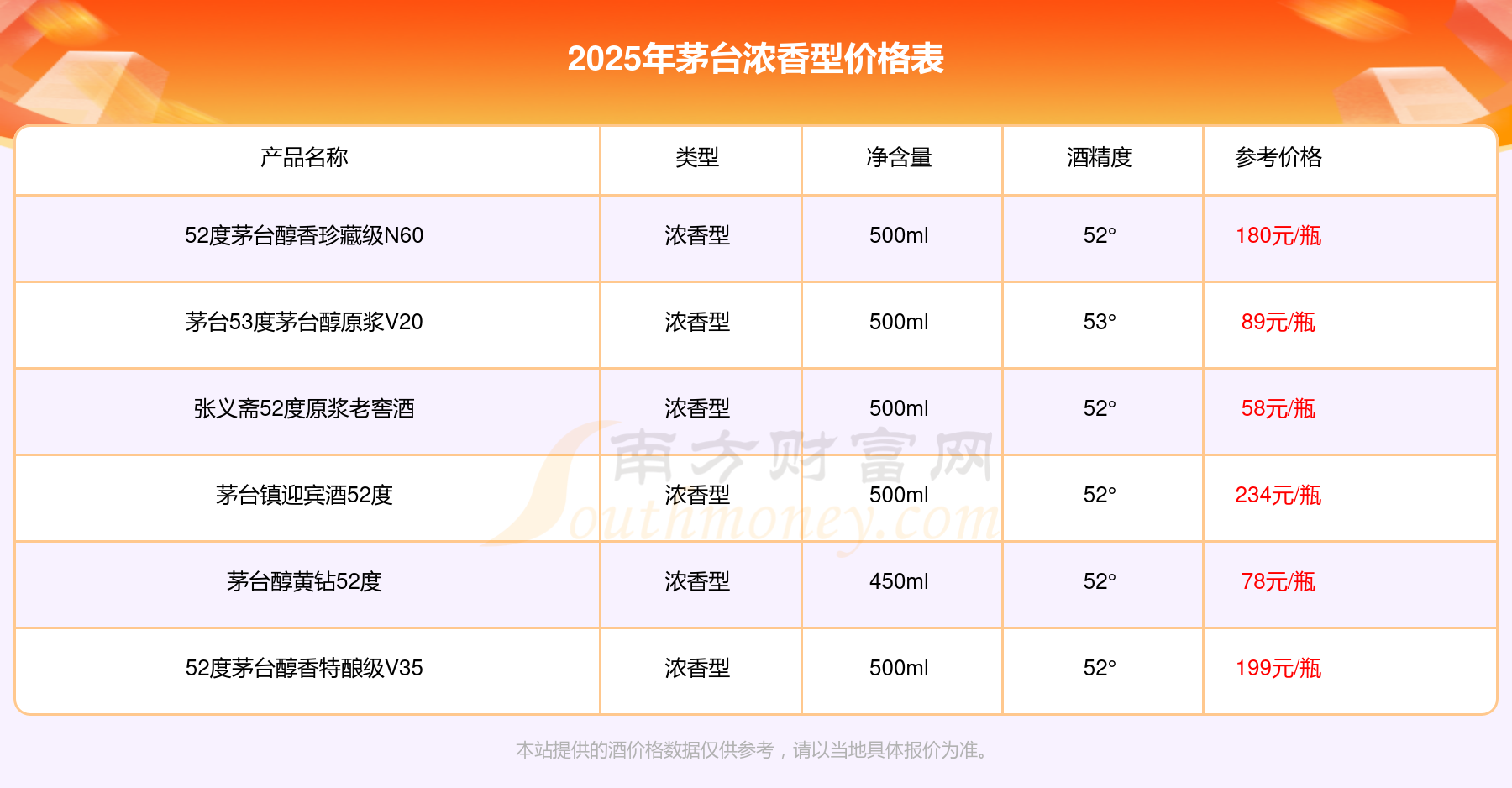 2025茅臺濃香型酒最新價格: