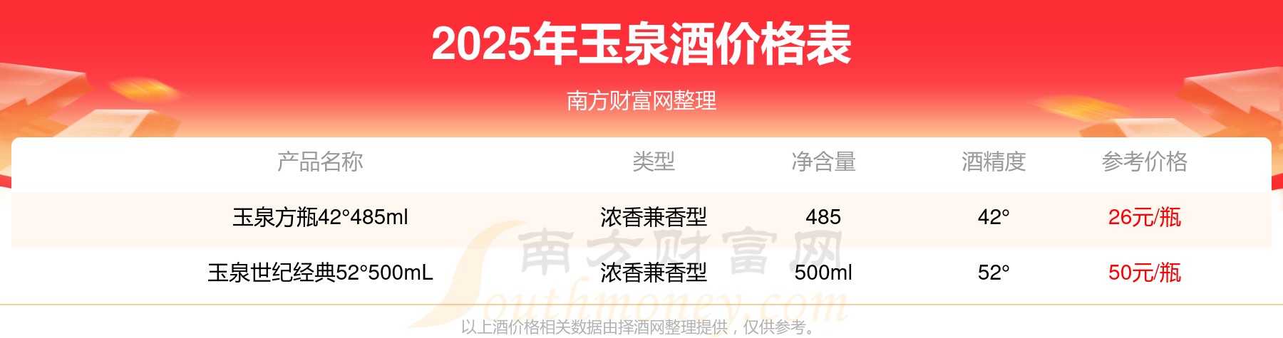 當(dāng)下玉泉酒價(jià)格最高的酒為玉泉世紀(jì)經(jīng)典52°500mL,參考價(jià)50元/瓶,而玉泉酒價(jià)格最低的是玉泉方瓶42°485ml,參考價(jià)26元/瓶,價(jià)格高低差為24元/瓶。