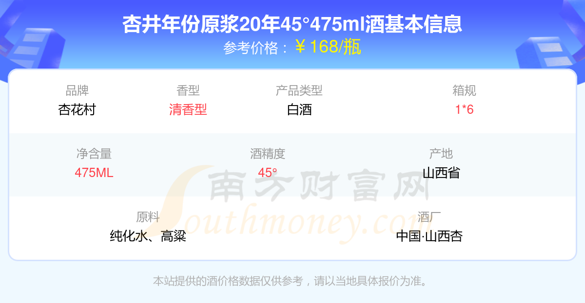杏井年份原漿20年45°475ml基本信息